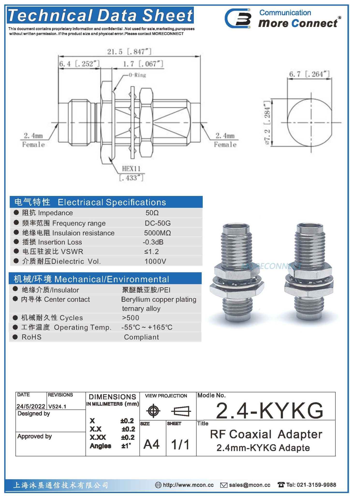 绝缘:PEI内导体:镀青铜 表面处理:镀金