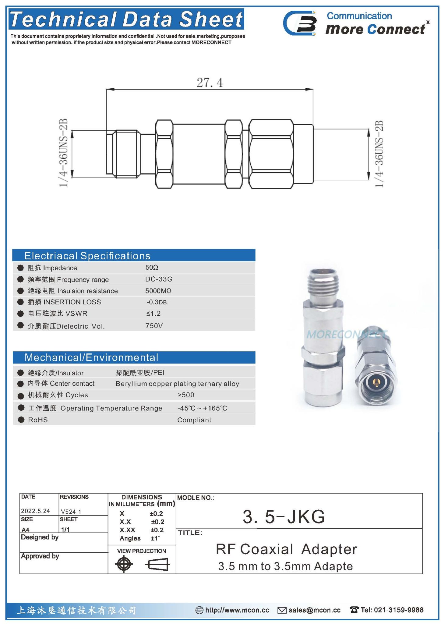 绝缘:PEI内导体:铍青铜 表面处理:镀金