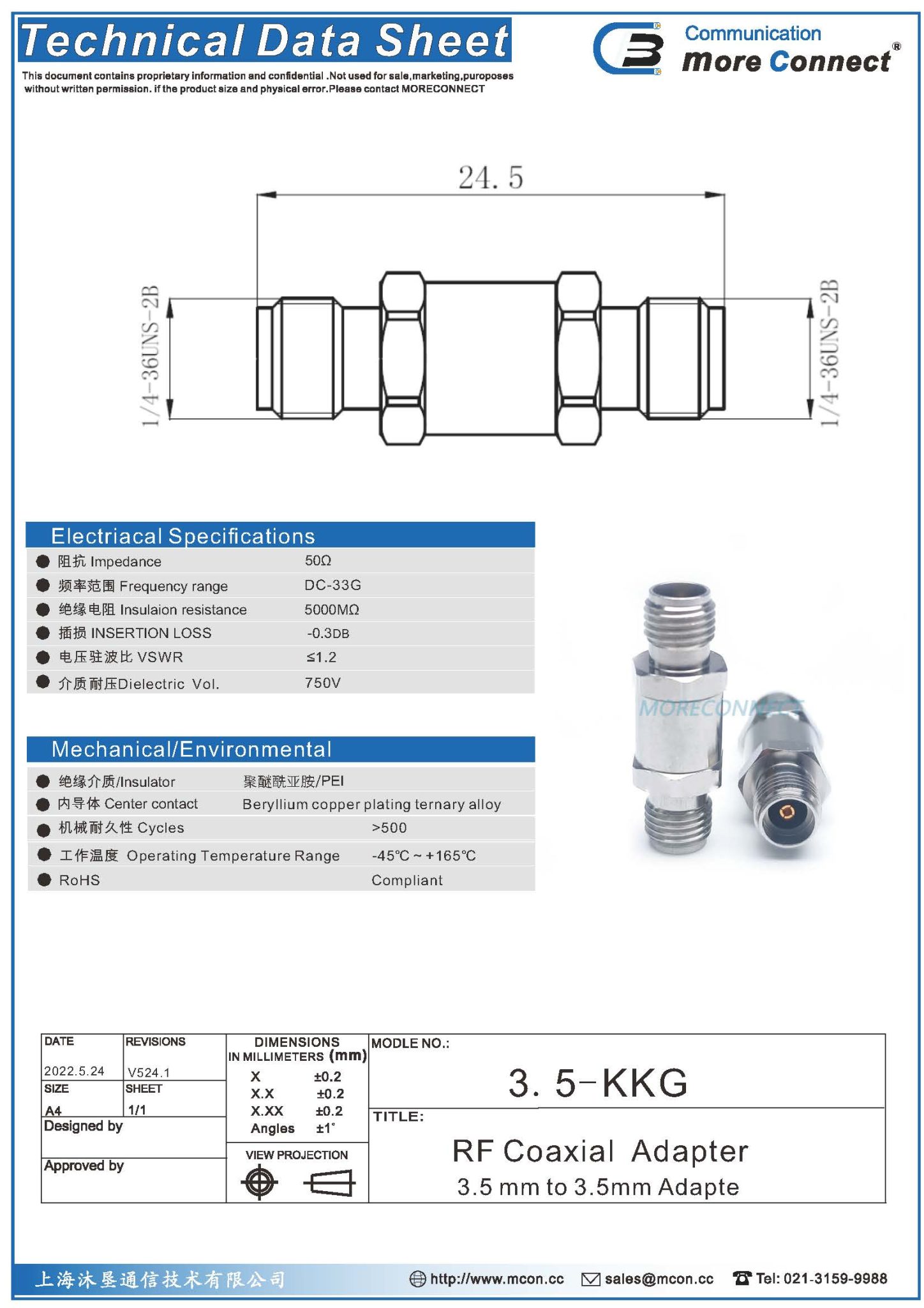 绝缘:PEI内导体:铍青铜 表面处理:镀金
