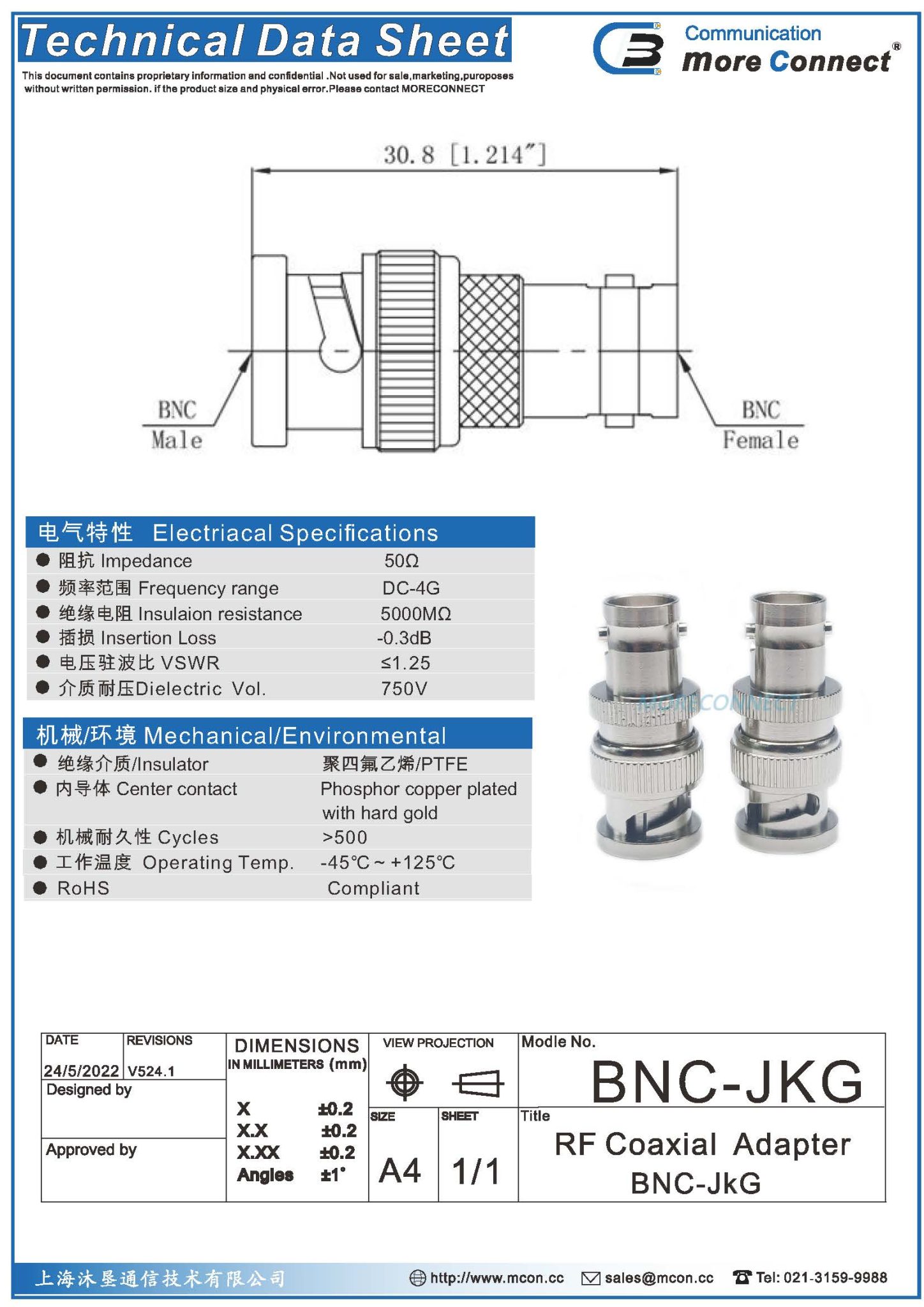 绝缘:PTFE内导体:铍青铜 表面处理:镀金
