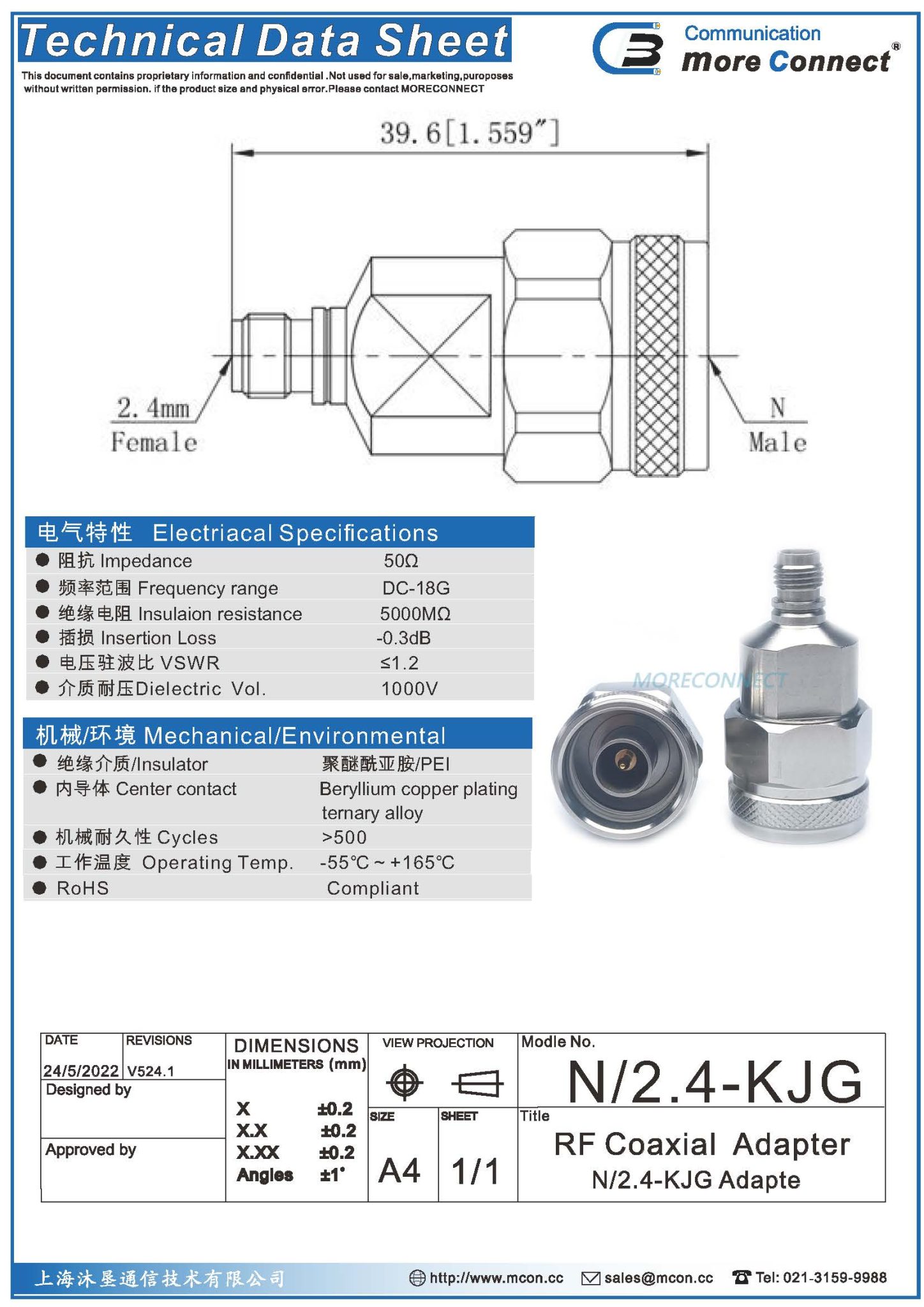 绝缘:PEI内导体:铍青铜 表面处理:镀金