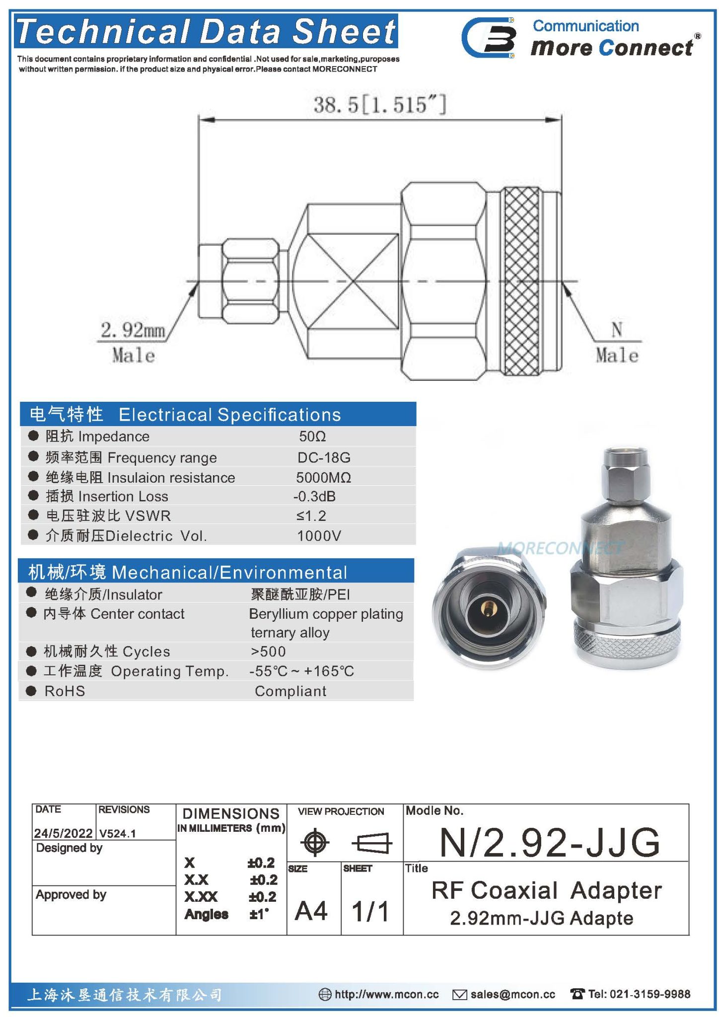 绝缘:PEI内导体:镀青铜 表面处理:镀金