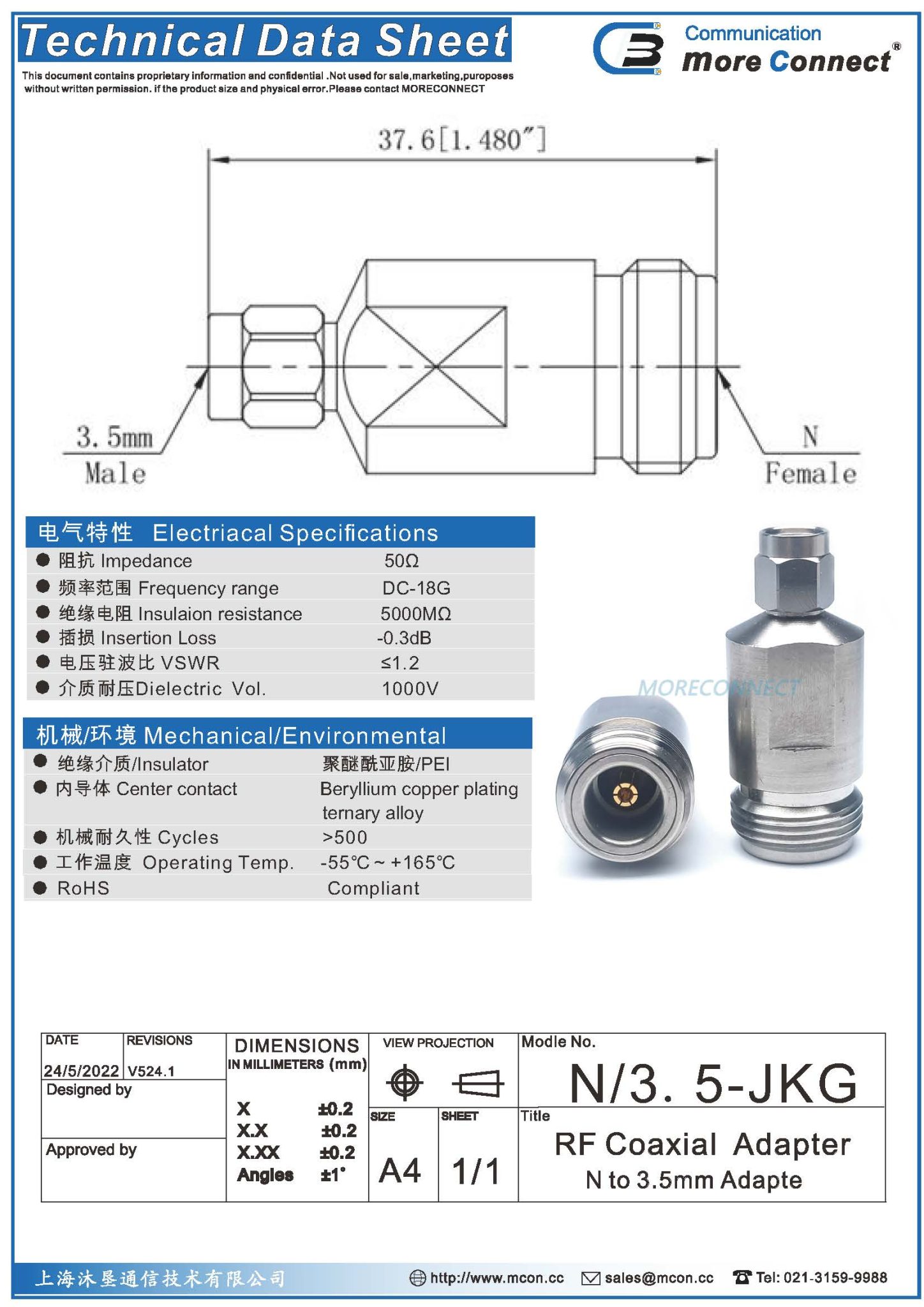 绝缘:PEI内导体:镀青铜 表面处理:镀金