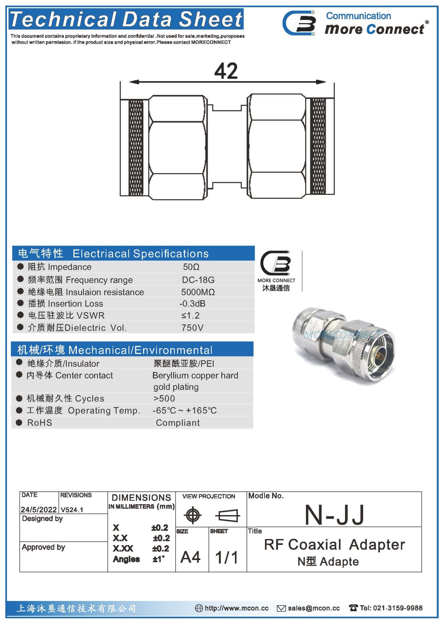 绝缘:PEI内导体:铍铜镀硬金 表面处理:镀金