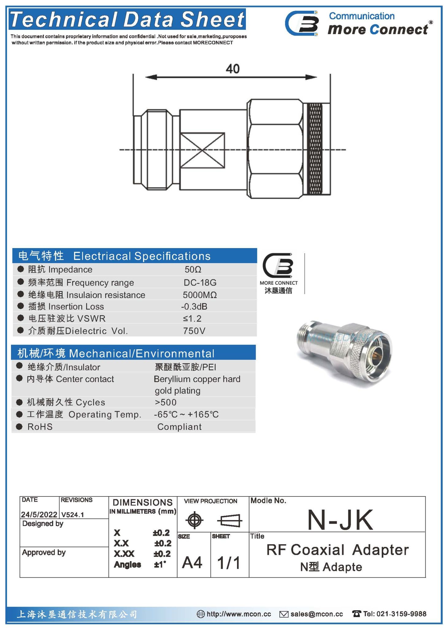 绝缘:PEI内导体:铍铜镀硬金 表面处理:镀金