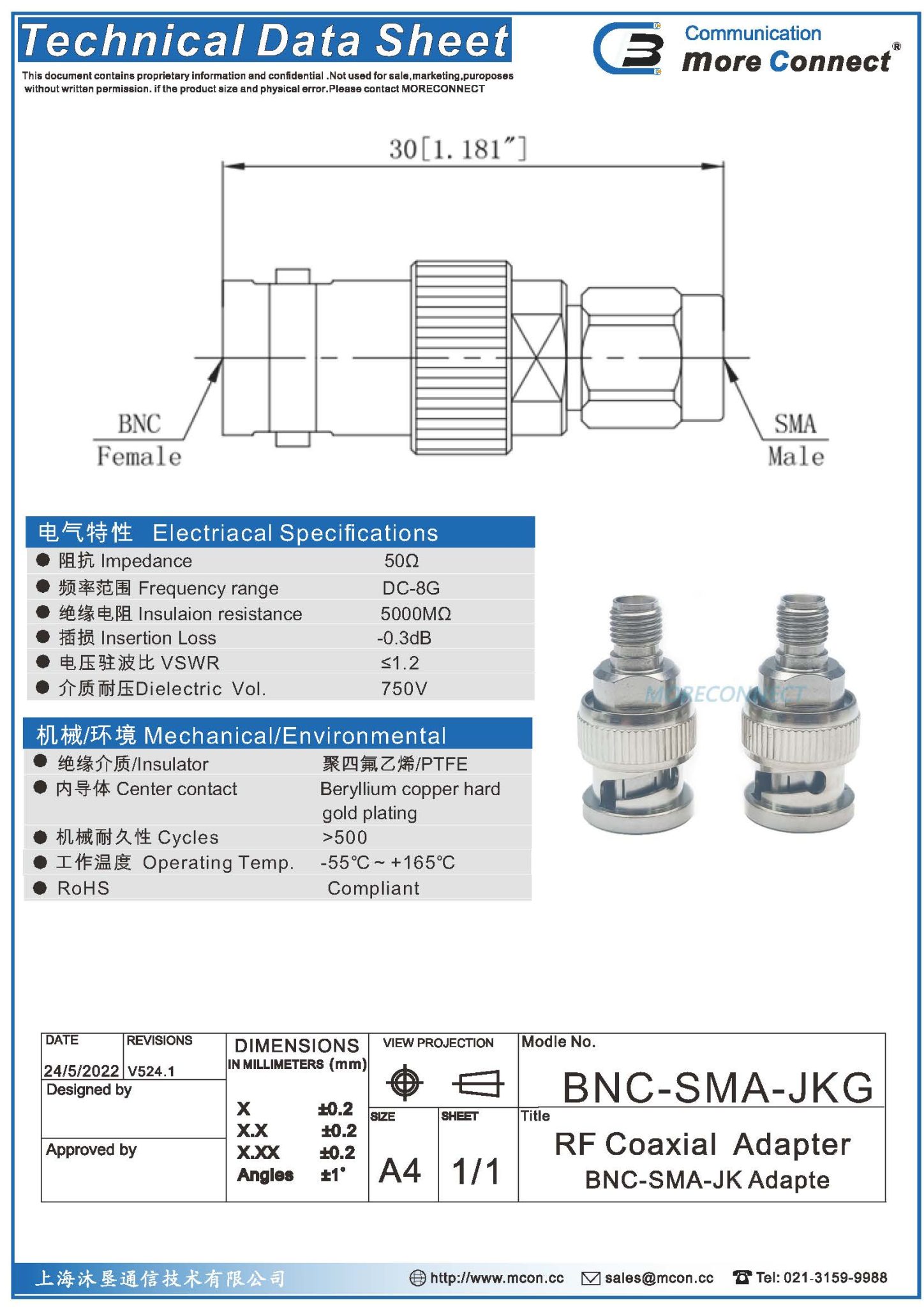 绝缘:PTFE内导体:铍青铜 表面处理:镀金