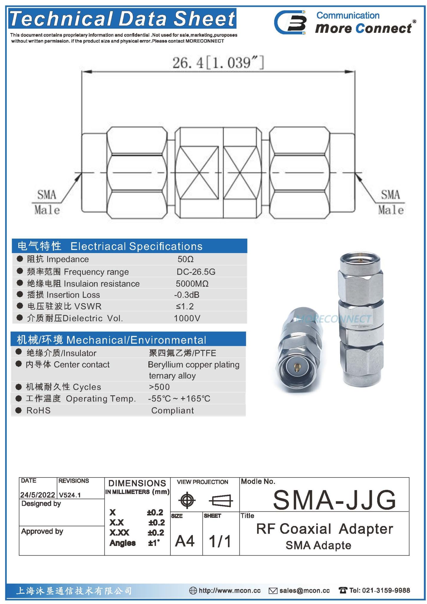 绝缘:PTFE内导体:铍青铜 表面处理:镀金