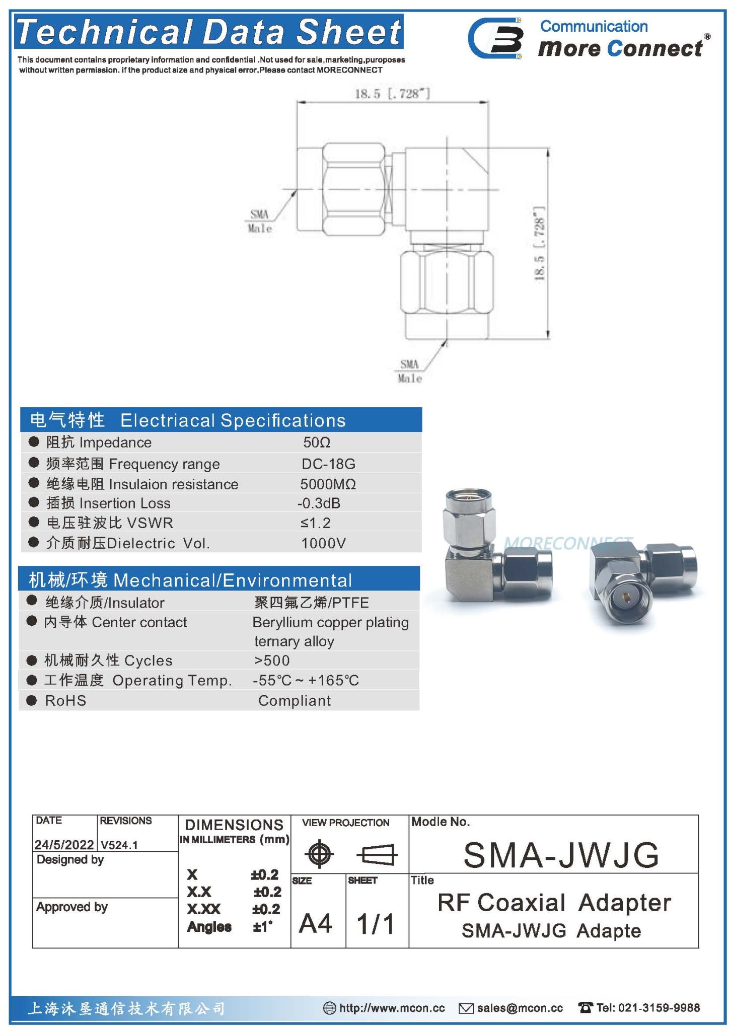 绝缘:PTFE内导体:铍青铜 表面处理:镀金