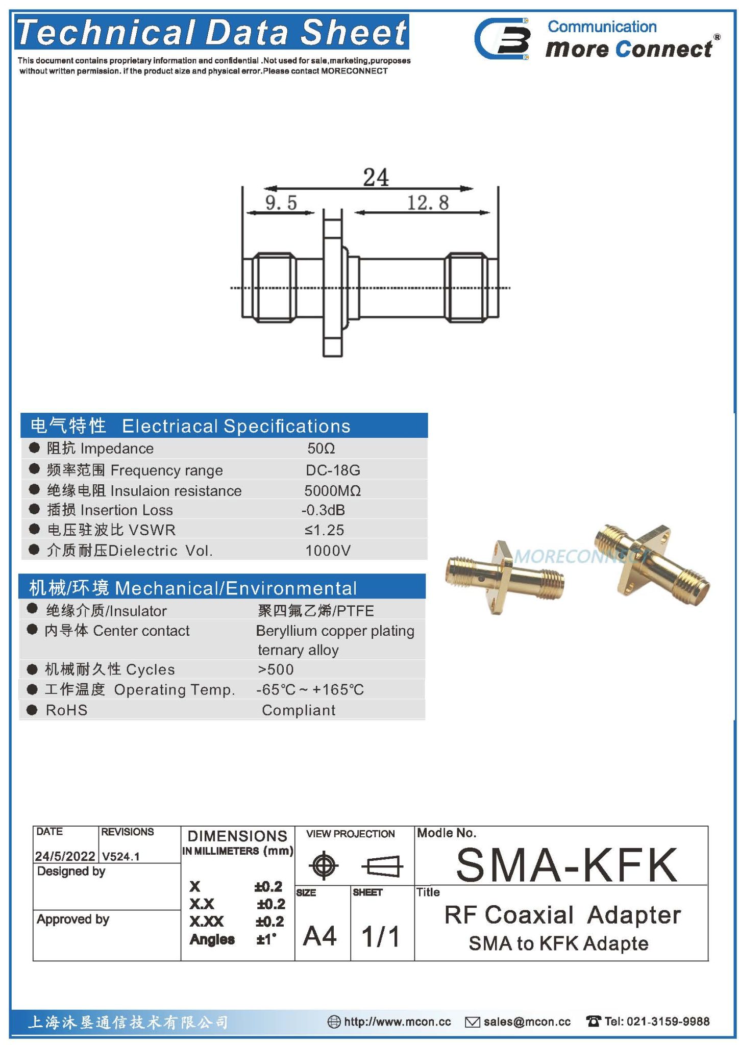 绝缘:PTFE内导体:铍青铜 表面处理:镀金