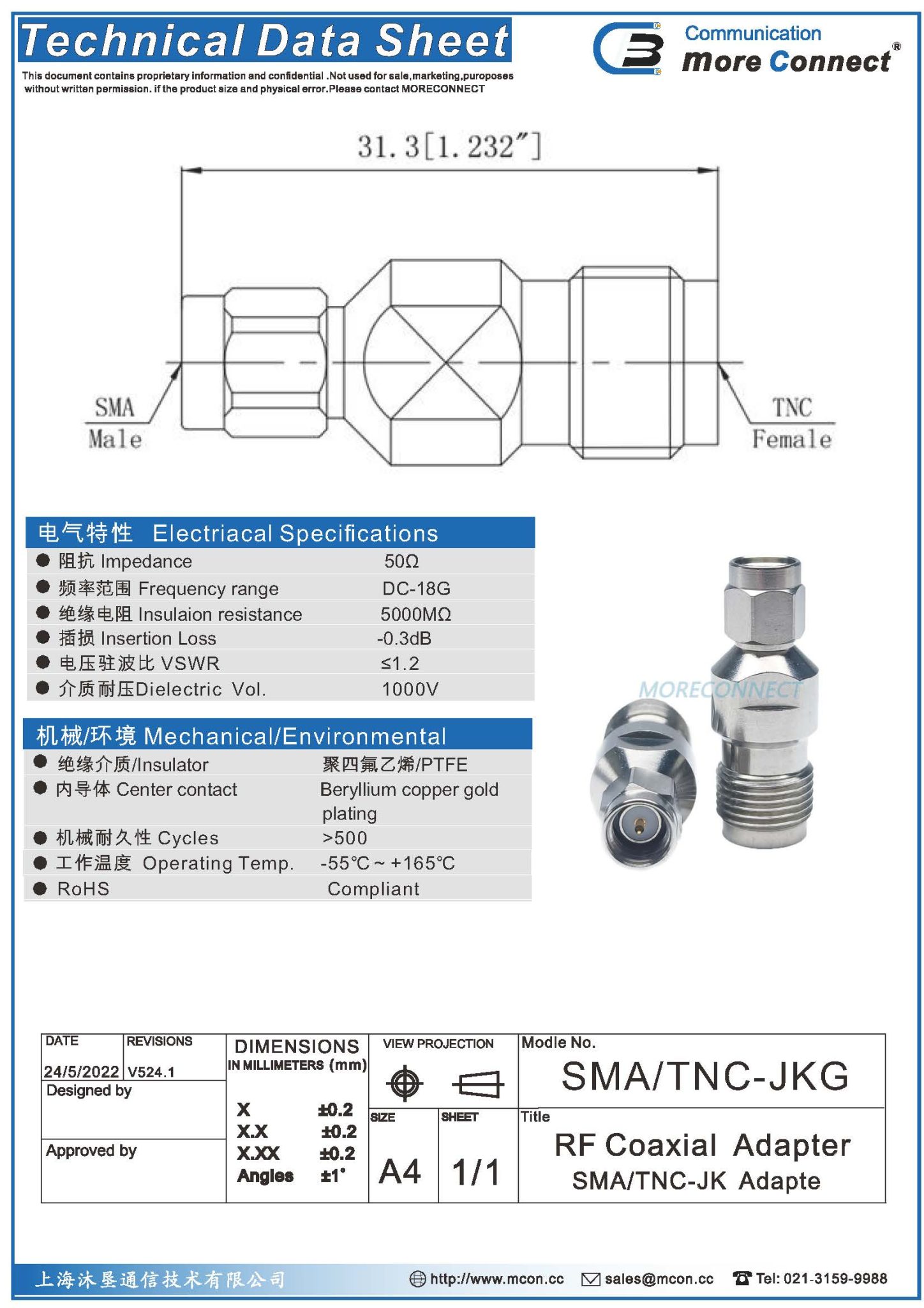 绝缘:PTFE内导体:铍青铜 表面处理:镀金