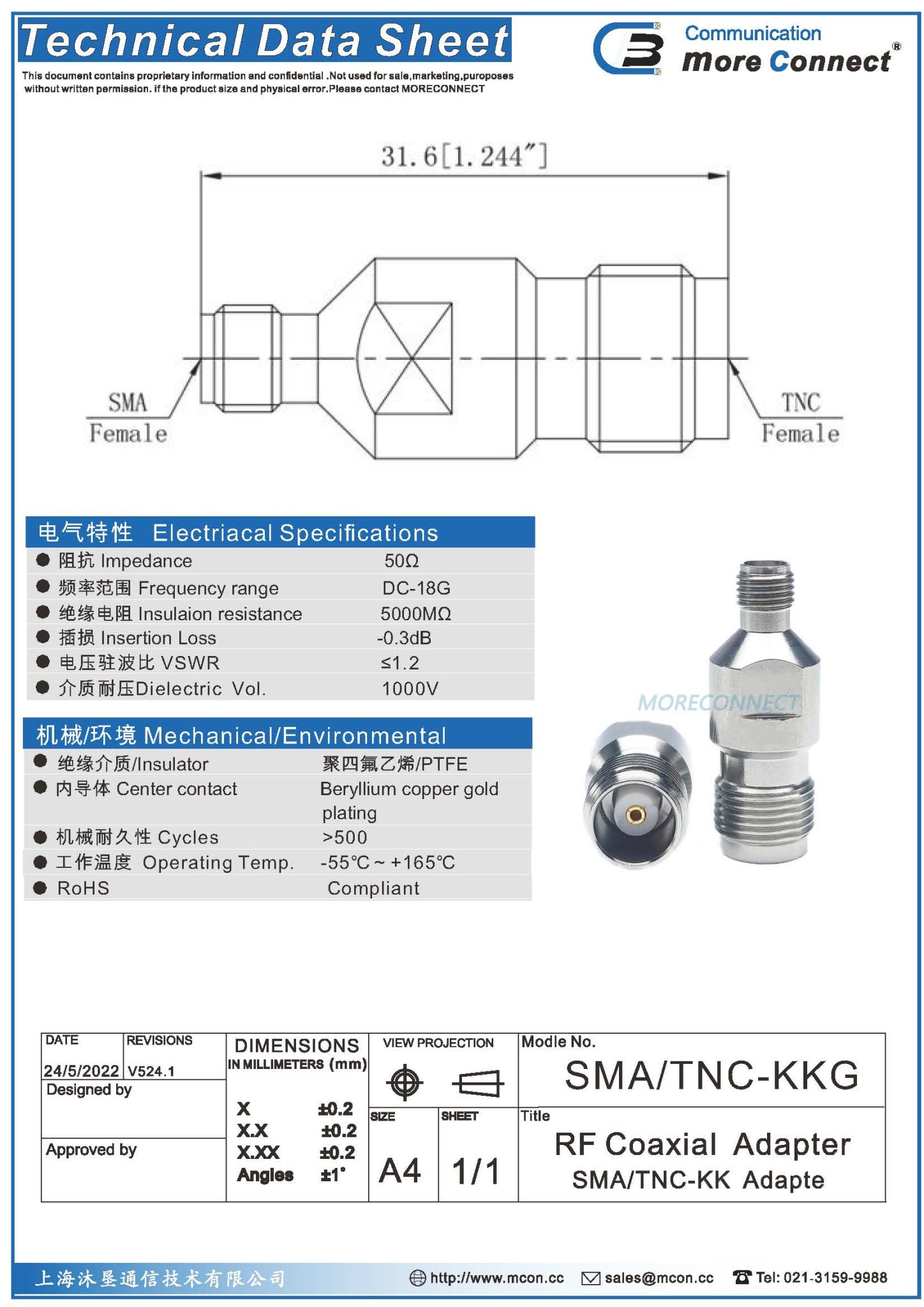 绝缘:PTFE内导体:铍青铜 表面处理:镀金