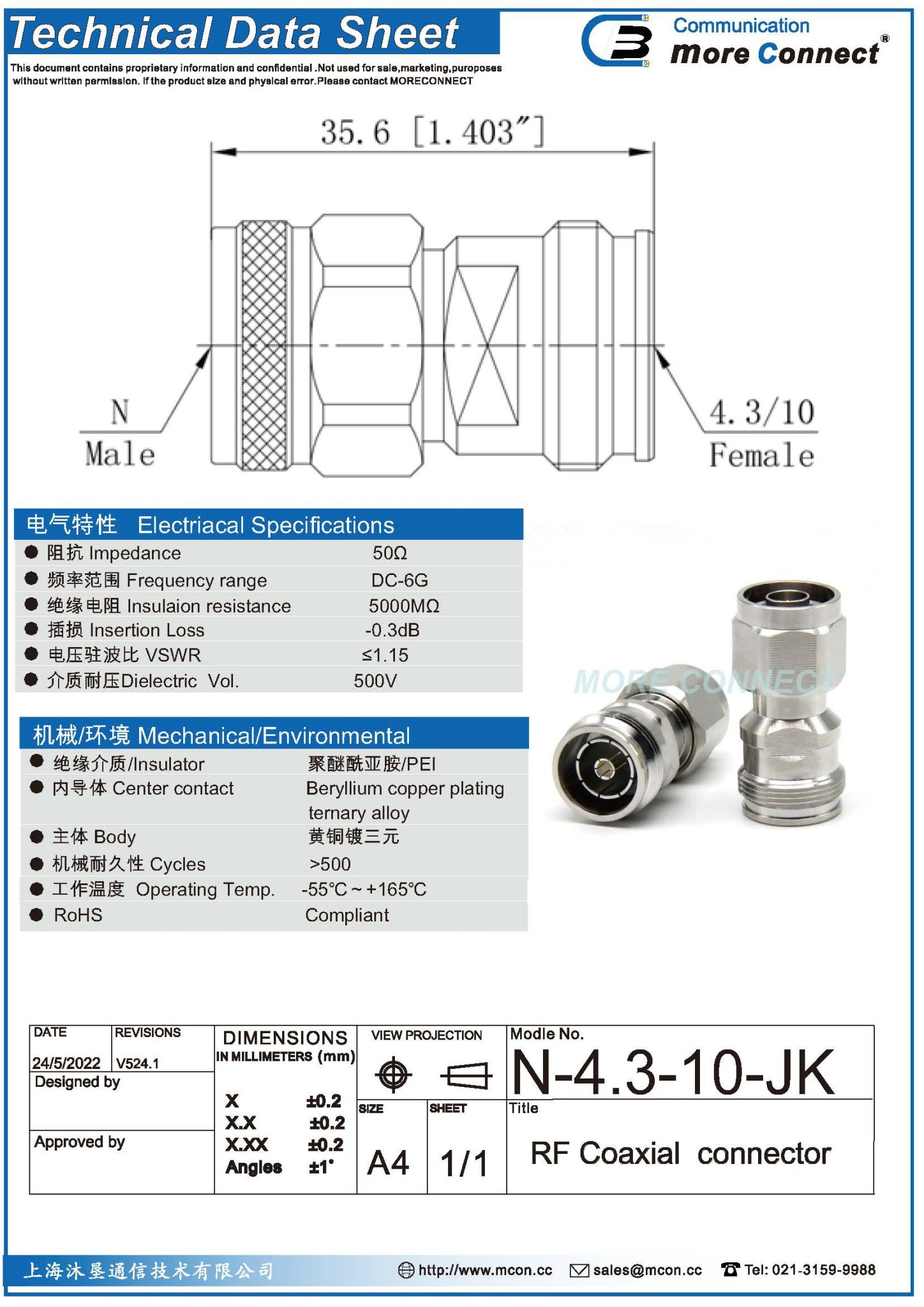 绝缘:PEI内导体:铍青铜 表面处理:镀金