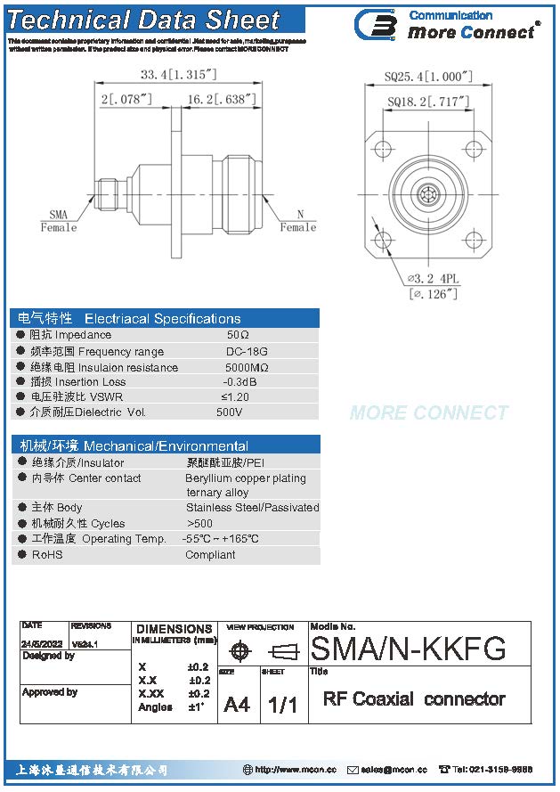 绝缘:PEI内导体:铍青铜 表面处理:镀金