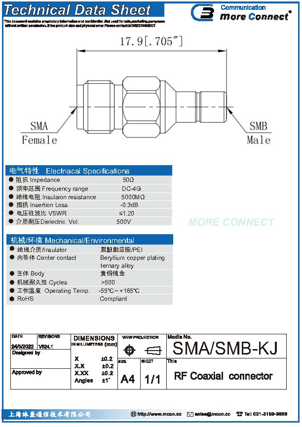 绝缘:PEI内导体:铍青铜 表面处理:镀金
