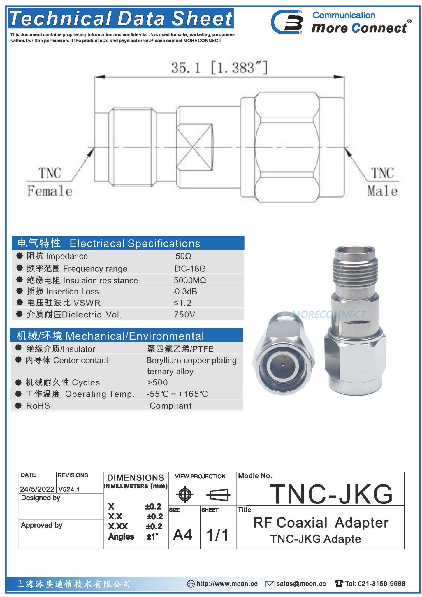 绝缘:PTFE内导体:铍青铜 表面处理:镀金